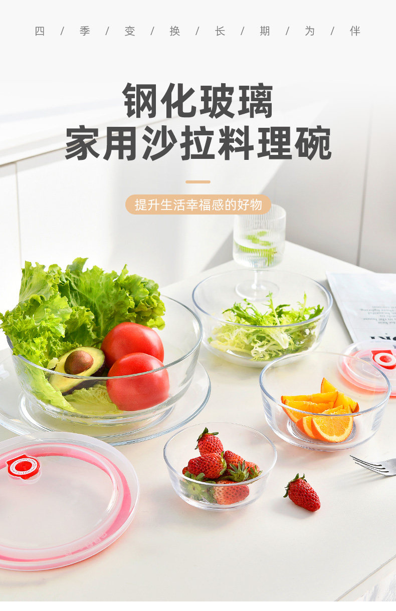 玻璃碗耐高温家用沙拉碗透明大碗