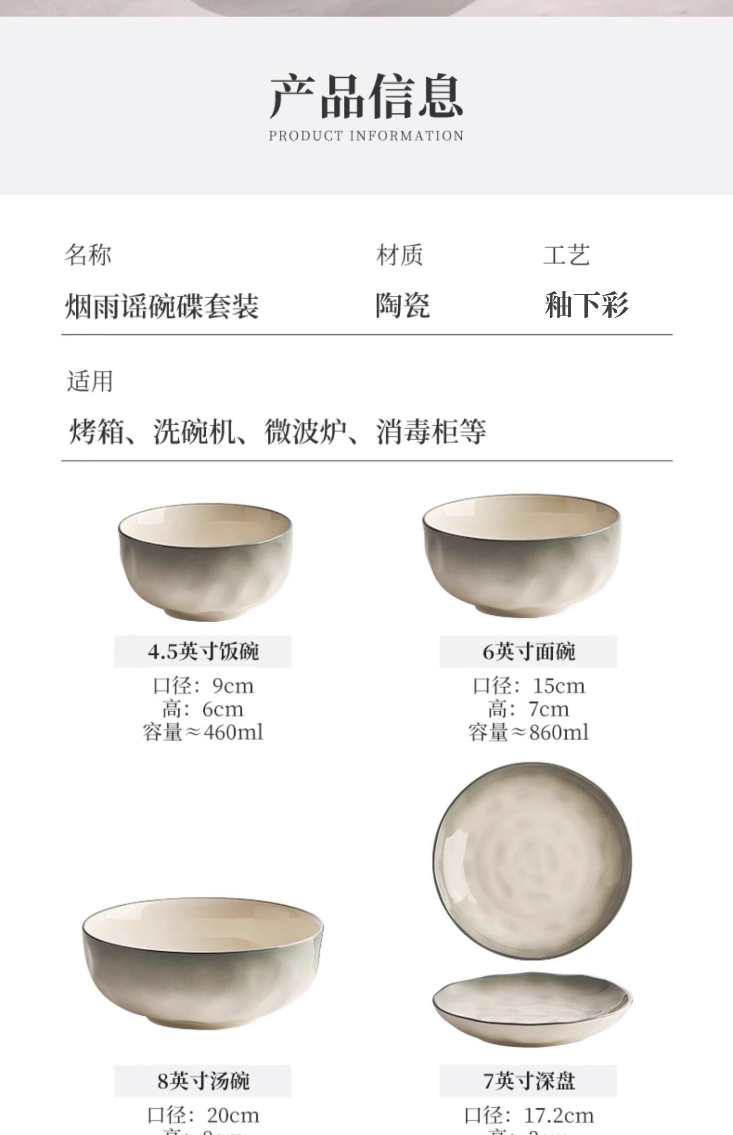 烟雨谣8英寸汤碗2个装
