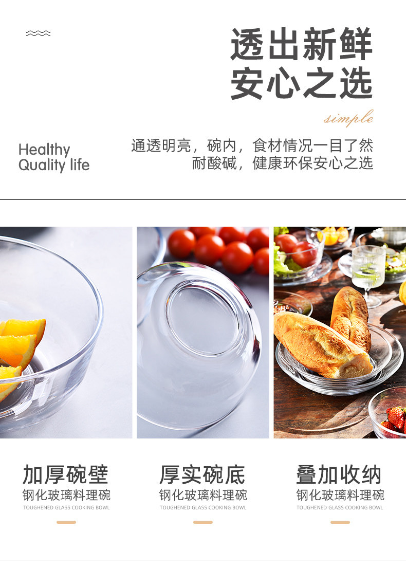 玻璃碗耐高温家用沙拉碗透明大碗