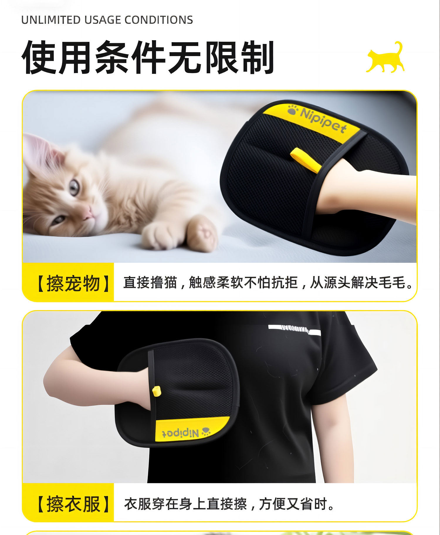 宠物静电除毛手套双向刷毛粘毛